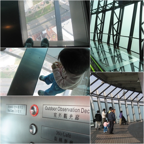 58 樓設有透明地板,可以直接看到下面的地面,其實有點小嚇人,還好小愛還不知道要怕~